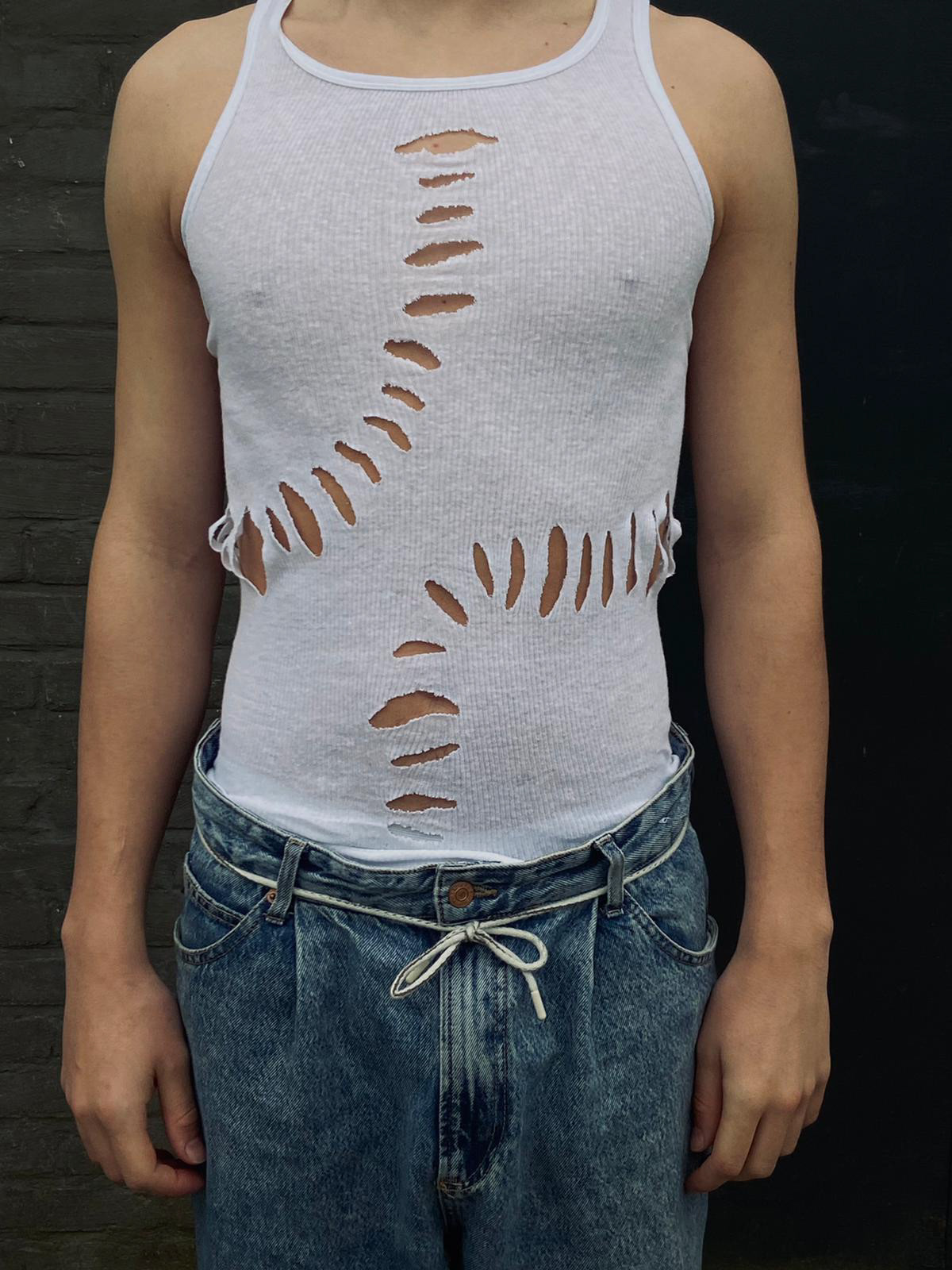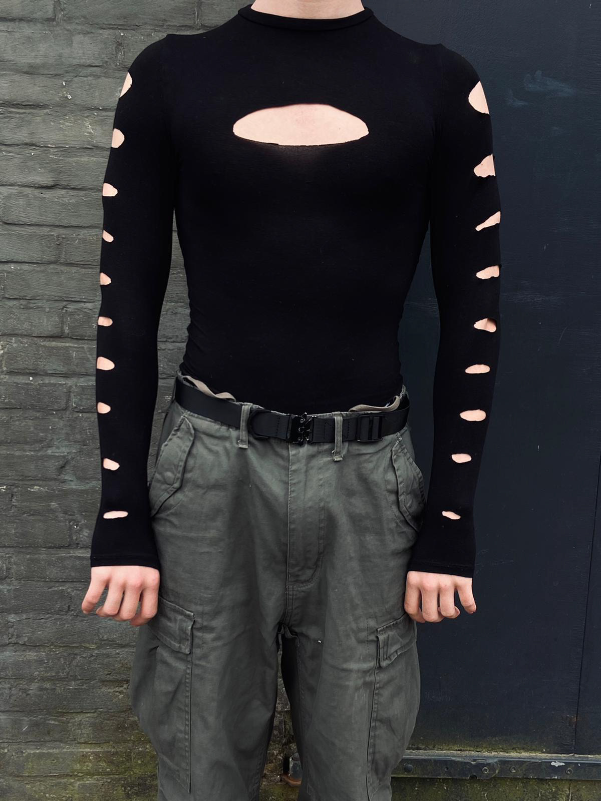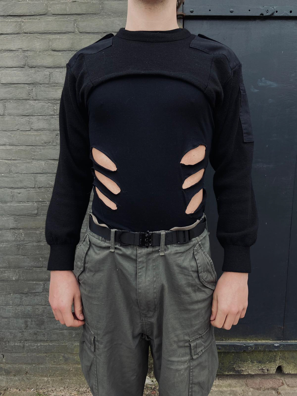 By revealing the body, we can either challenge or reinforce masculinity. Exploring the boundaries of shape and material.